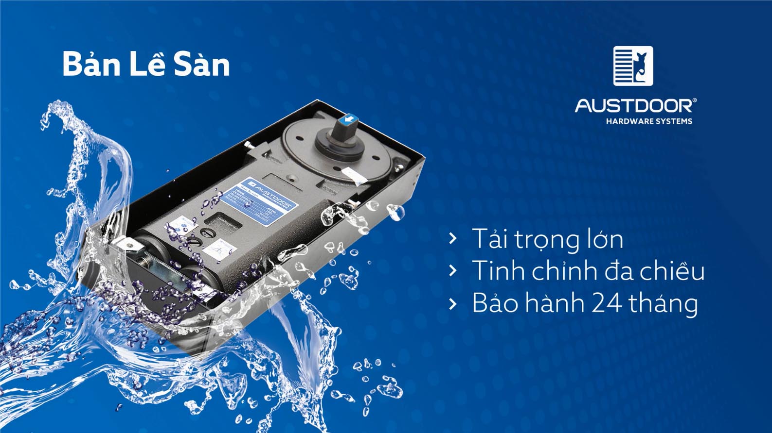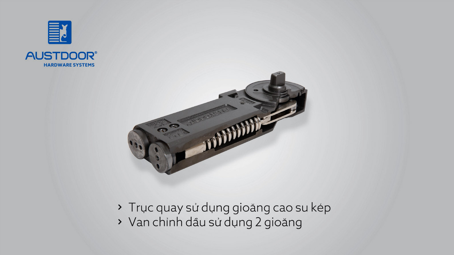 Bản lề sàn Austdoor với hệ thống gioăng kép giúp hạn chế tràn dầu